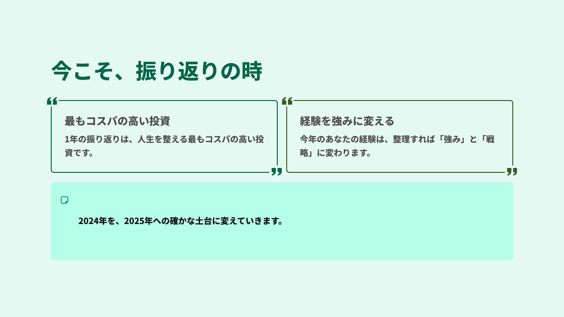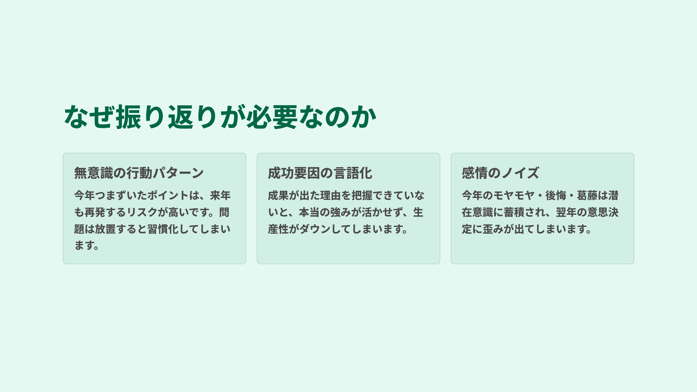 反省でも、評価でも、改善点探しでもありません。
